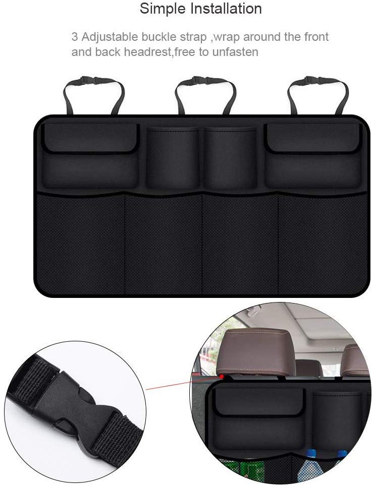• Easy to Installation & Remove: Simply hang to the headrest with 3 adjustable buckle straps. then attach the opening to the car backseat and stay firmly. You can fold it up and store it away when it’s not in use. Great for keeping your car neat and organized.