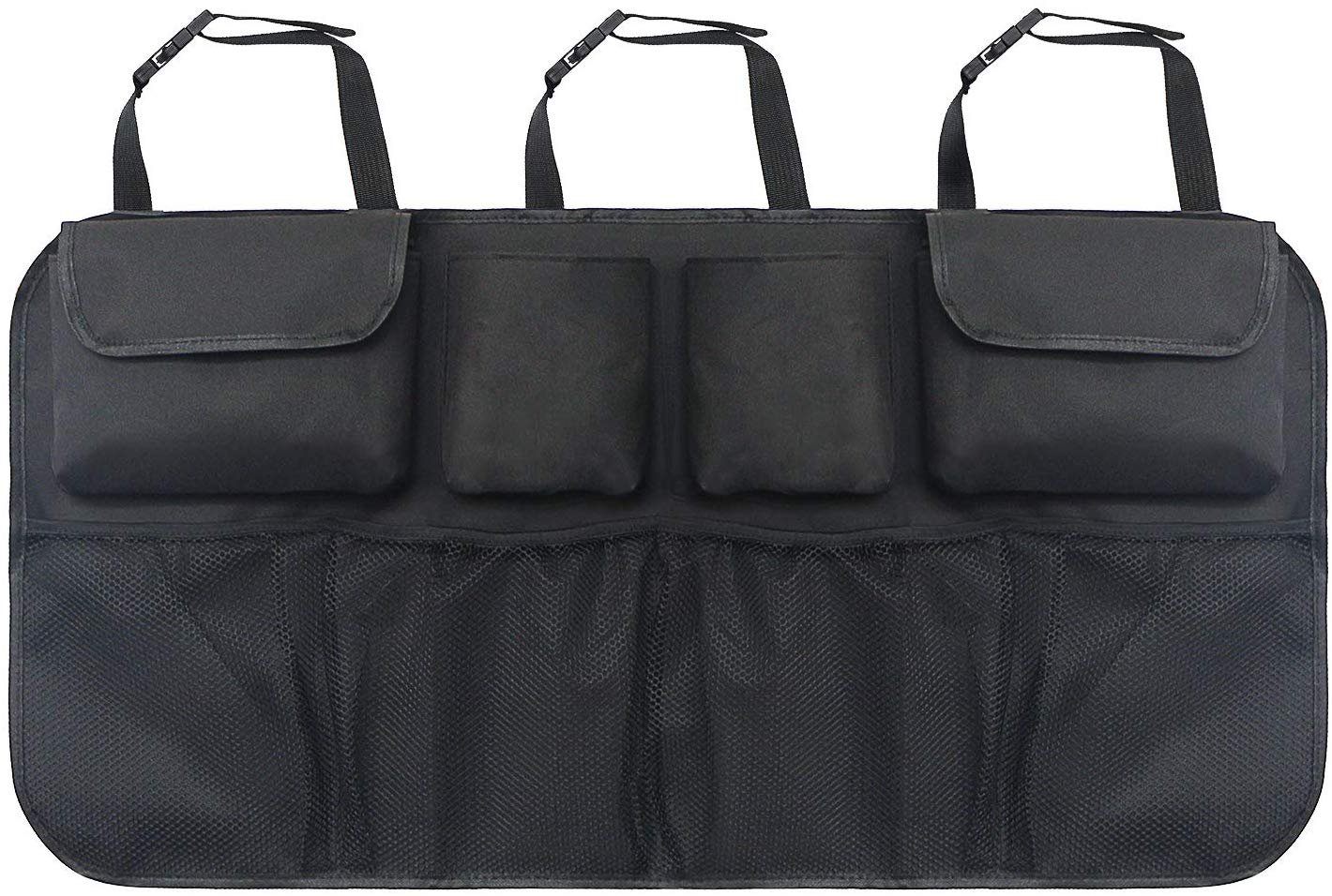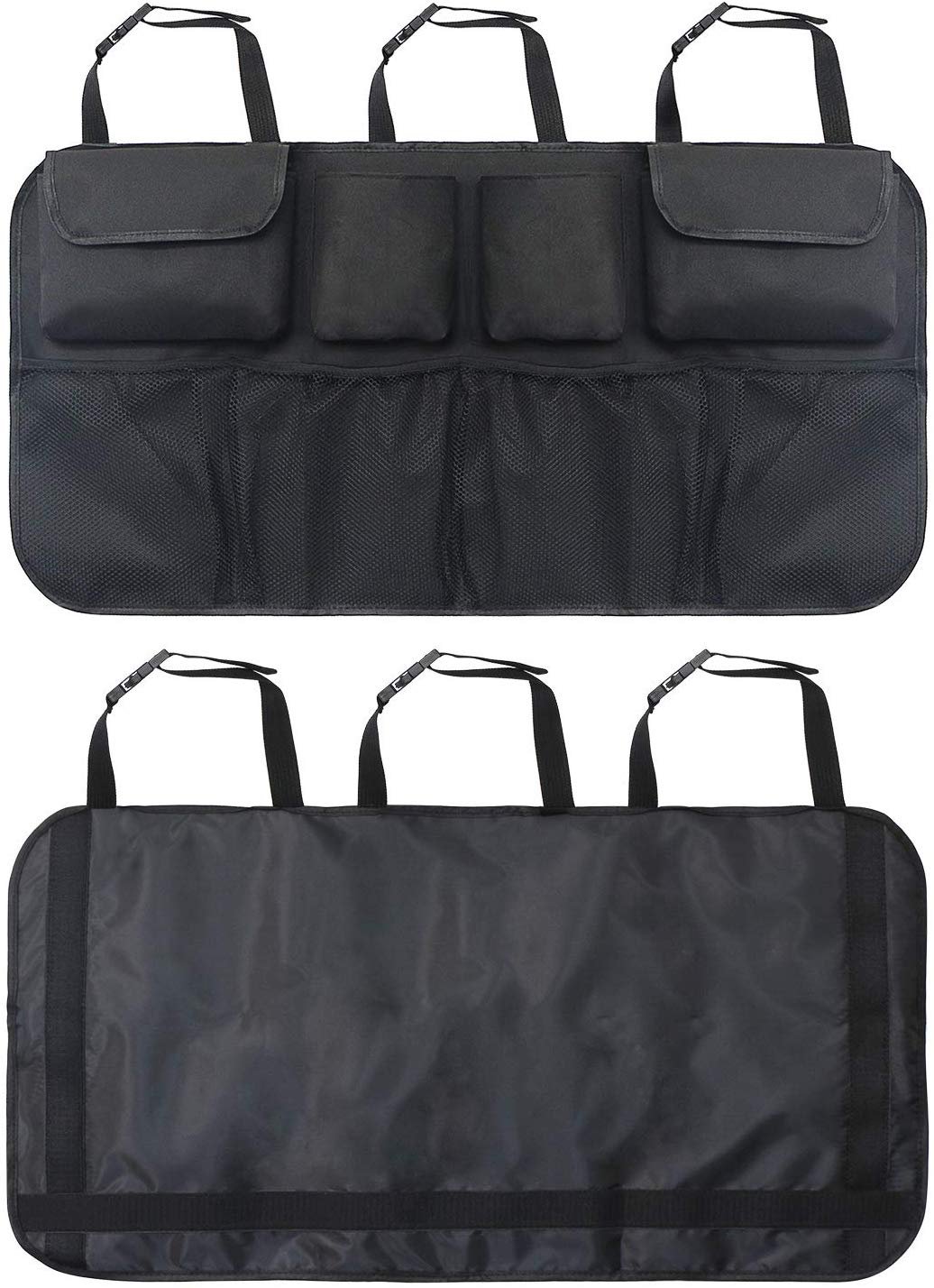 • Car Trunk Organizer: Folding storage trunk organizers with adjustable straps to fit all headrests so that your clutter and car stuff can be placed in the mesh pockets giving you extra trunk space and stops things from rolling around. The perfect car pocket organizer for you!
