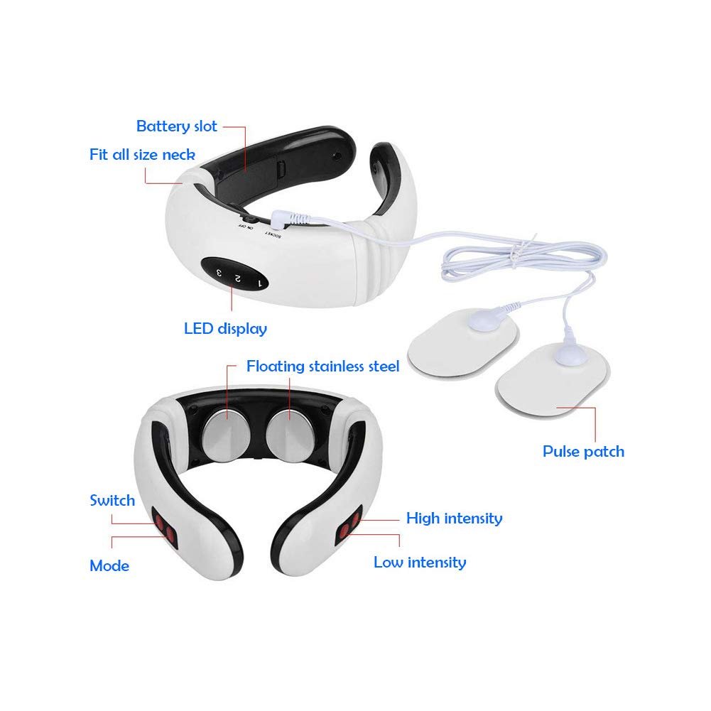 Massager: With ergonomic U-design. the use of low-frequency electrical pulse. magnetic effect. loop traction three-synchronous treatments to form a high-performance composite energy field. Latest portable electronic snap-on neck massaging device for wellness and well being as well as prevention of cervical neck pain. headache. shoulder pain.